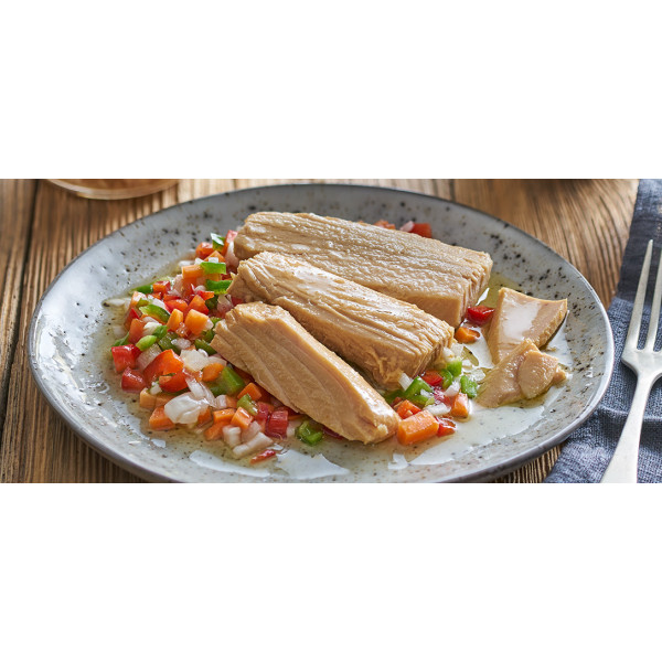 Složení: tuňák žlutoploutvý (Thunnus Albacares) LOMOS - zádová část, olivový olej, jedlá sůl.