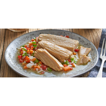 Složení: tuňák žlutoploutvý (Thunnus Albacares) LOMOS - zádová část, pitná voda, jedlá sůl.