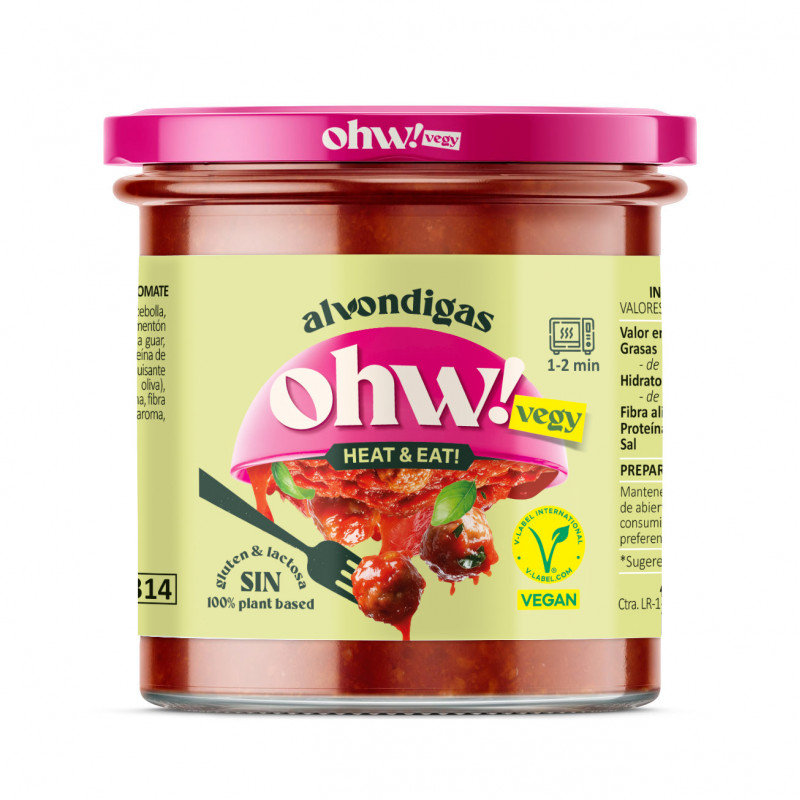 • Zloženie (ingrediencie): Paradajková omáčka (paradajky drvené a nakrájané (paradajka, soľ, okysľovač: kyselina citrónová), voda, mrkva, cibuľa, olmetylcelulózový olej, inulín, cesnak, celý trstinový hnedý cukor, soľ, aromatické rastliny, korenie, zahusťovadlo: guarová guma) 71% , textúrované hrachové proteínové mäsové guľôčky (voda, textúrovaný hrachový proteín 3,3%, olivový olej, zahusťovadlo: zemiakový škrob, repa, cibuľa, výživné droždie, korenie, vláknina, zelenina, metylcelulóza, prírodné arómy, extrakt z korenia, soľ) 29%.